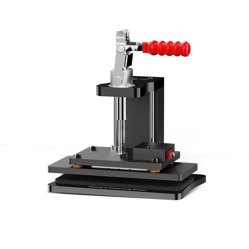 Mini Heating Press Station is compatible with iPhone 17/Air/17 Pro/17 Pro Max, and it supports mobile phone frame hot pressing, phone back cover hot pressing, mobile phone hot pressing and features airtightness restoration. Flip-type pressing and rotating micro-adjustment design, and includes a pre-drilled hole for the phone's camera, protecting the camera and other accessories from damage. Suitable for mobile phone repair service providers.